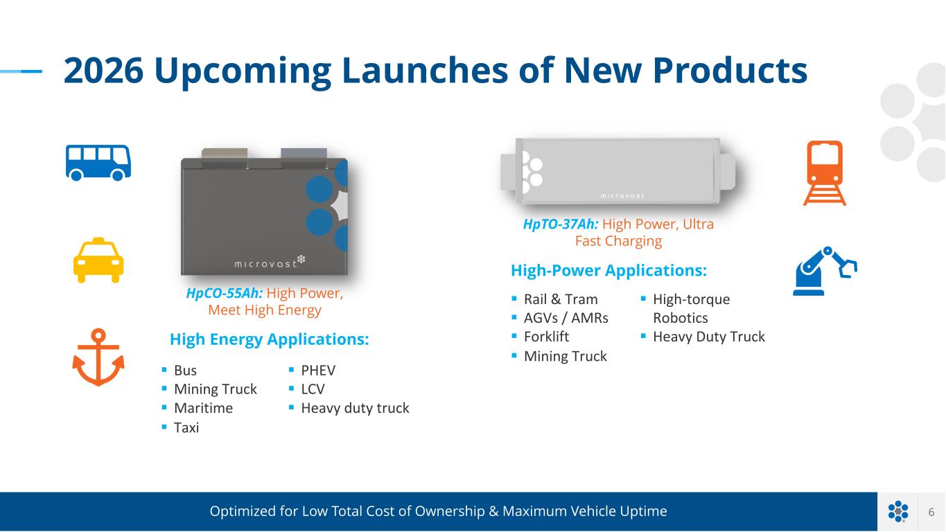 5 Phase 3.2 Update Capacity Expansion Expanding our Huzhou facility with Phase 3.2 will allow us to deliver more products to more customers: ü Clean rooms are completed and in use. ü Utility equipment installation completed and in operation. ü HpCO-55Ah trial production has begun on electrode section, assembly, and formation; no-load running tests have started. Ø Expected to provide up to an additional 2GWh of capacity annually. Ø Anticipated capability of producing both current and upcoming advanced cells such as HpCO-53.5Ah/HpCO-55Ah/HnCO-120Ah.